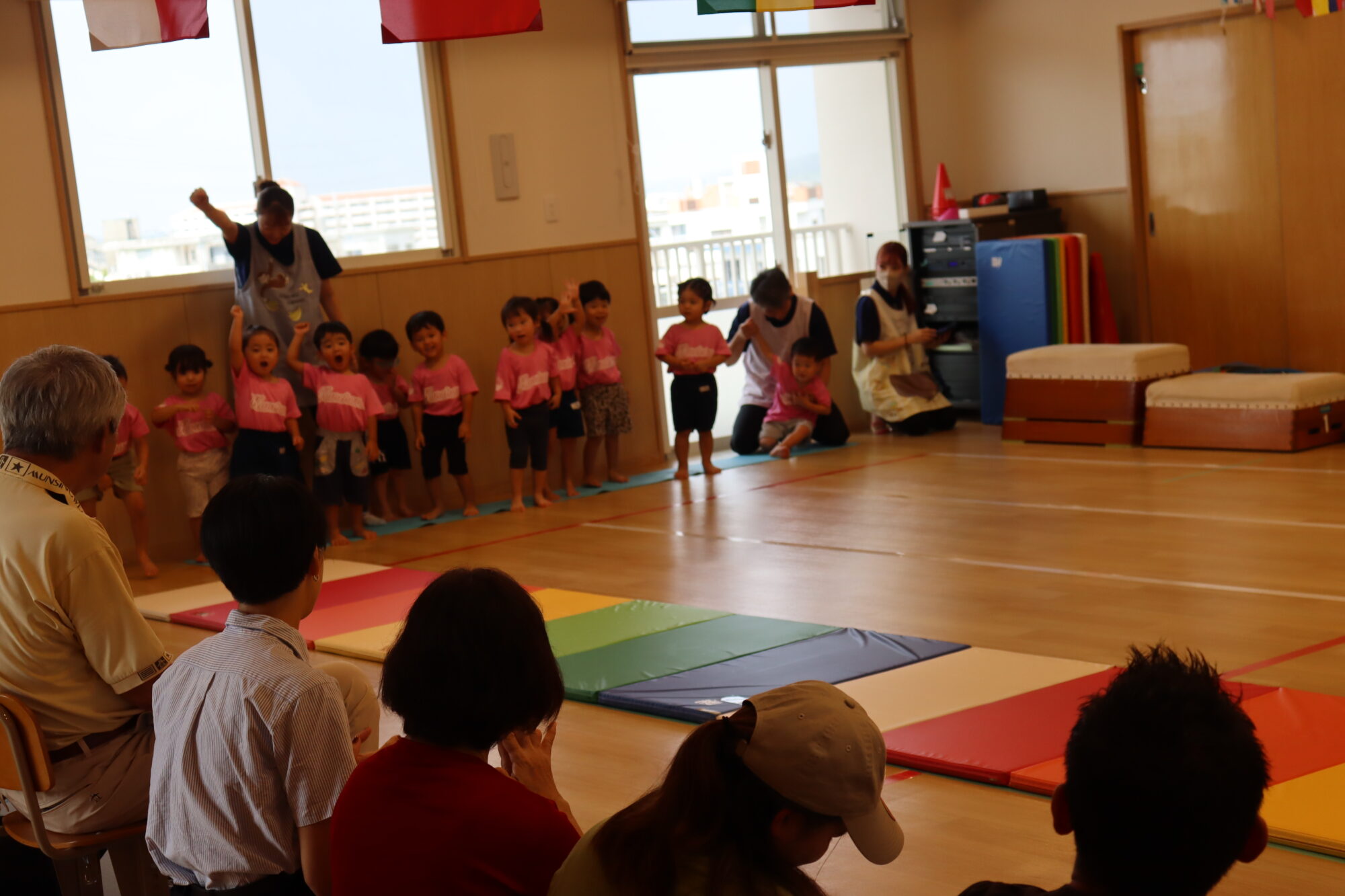 今日はお父さん、お母さん、子ども達が楽しみにしていた保育参観を行いました(^^♪いつもと違った雰囲気を感じながら、日頃の活動を見てもらったり、製作を楽しんでいる姿を多く見ることができましたよ(*^_^*) うるま市立中央図書館へ行ってきたよ~(*'ω'*) 遠足行ってきました(^_^)v 関連記事一覧 お別れ遠足!良い天気にも恵まれ😊楽しみました♪ うるま市立中央図書館へ行ってきたよ~(*’ω’*) 3・4・5歳児たてわり保育で水遊び タオル遊び&月刊絵本