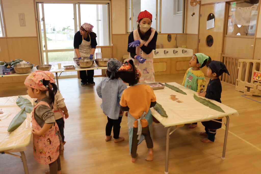 「いいにおい!」「早く食べたいね」と、期待に胸をふくらませる姿も見られ、伝統文化に触れる貴重な時間となりました