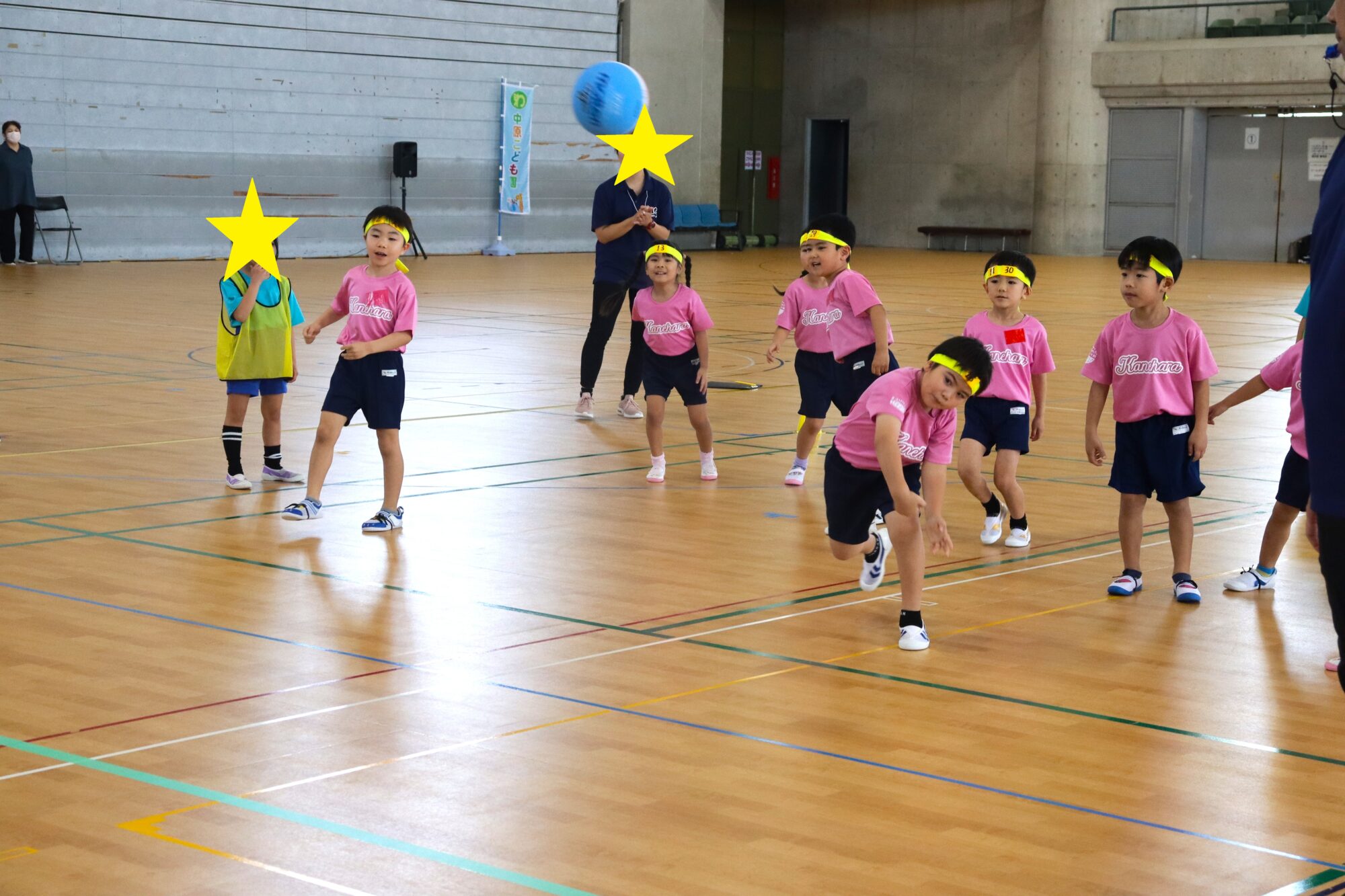 今日はうるま市内のわかめ福祉会に在籍している兼原こども園、中原こども園、高江洲こども園の3園での交流会を沖縄県総合体育館にて開催され5歳児(ぞう組)さんが参加してきました